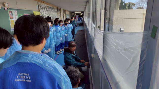 狭山市立中央中学校で3年生の卒業奉仕活動の