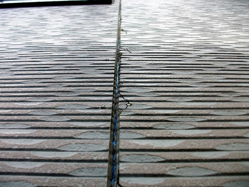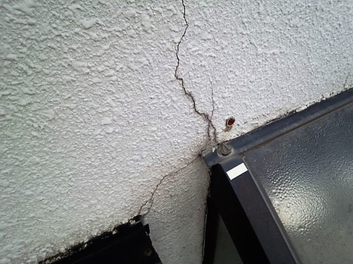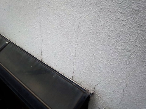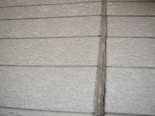 | サイディング壁の最大の注視点は、継目、サッシ廻りのコーキングだと思います。 コーキングは材料にもよりますが寿命は約10年と言われており、ゴム状だったものが固くなり下記写真の様な状態になってきます。 コーキングは雨水の侵入を防ぐ大切な部分です。 壁表面がきれいでも雨漏りしていたら建物にはよくありません。 コーキング部分の劣化具合でメンテナンスの時期が決まると言ってもいいでしょう。 |